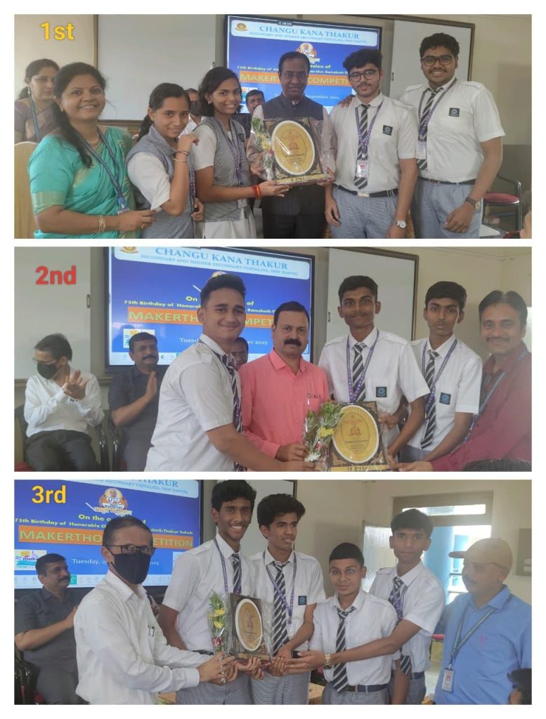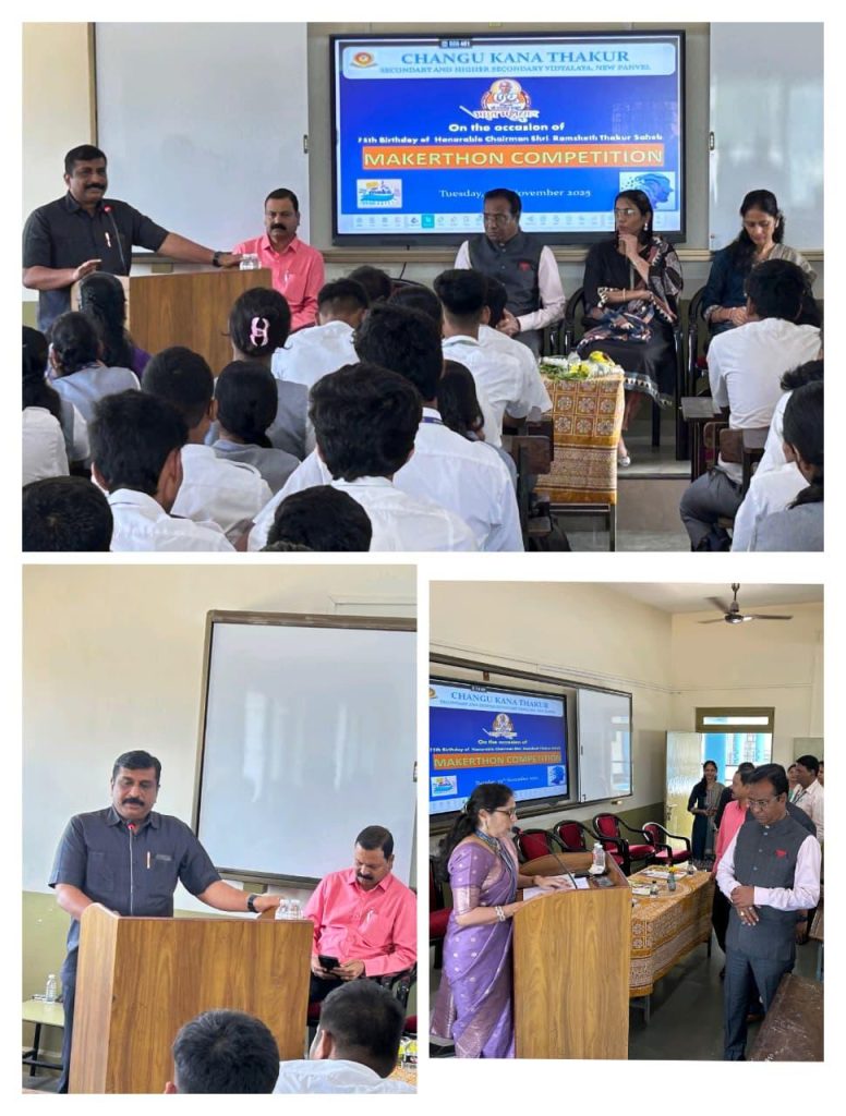 On 25th November 2025, the Science Committee of Changu Kana Thakur Secondary and Higher Secondary Vidyalaya, New Panvel, organized a Makerthon Competition on the occasion of the Diamond Jubilee Year (75th Birth Year) of Hon. Shri Ramsheth Thakur Saheb (Ex. M.P.), Chairman, Janardan Bhagat Shikshan Prasarak Sanstha, New Panvel (2nd June 2025 to 2nd June 2026) under  the guidance of Respected Principal Mr. Prashant More Sir, Supervisor Mr. Ajit Sonawane Sir (Arts and Commerce) and Supervisor Mrs. Swati Patil Madam (Science).