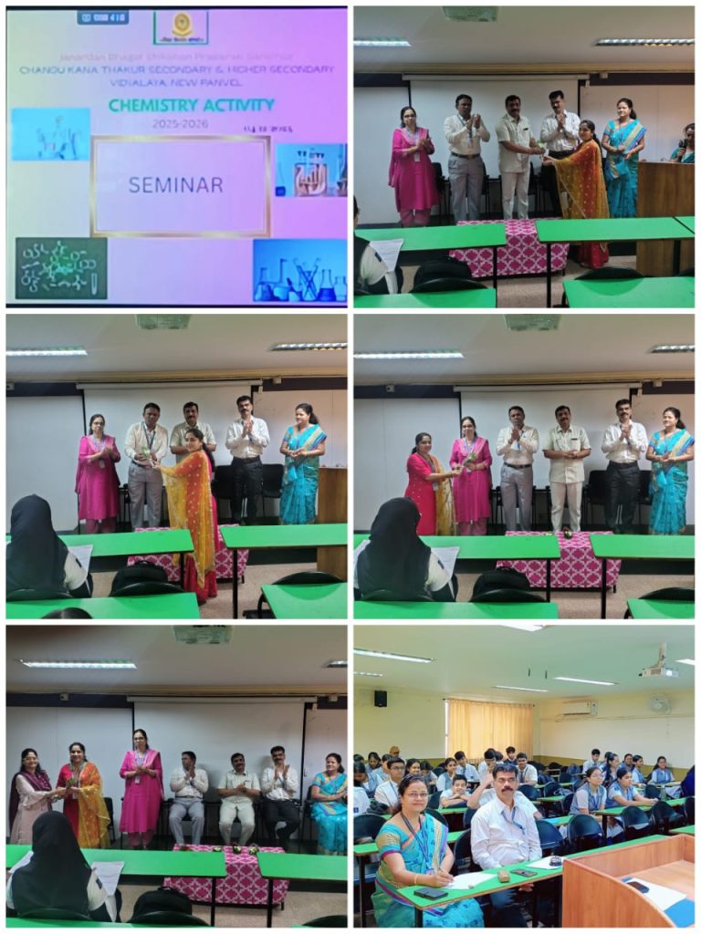 On 4 December 2025, Janardan Bhagat Shikshan Prasarak Sanstha’s Changu Kana Thakur Secondary and Higher Secondary Vidyalaya organized Chemistry Seminar Activity for XI Standard students, under the guidance of Principal Mr. Prashant More Sir, Supervisor Mrs. Swati Patil Madam, and Supervisor Mr. Ajit Sonawane Sir.