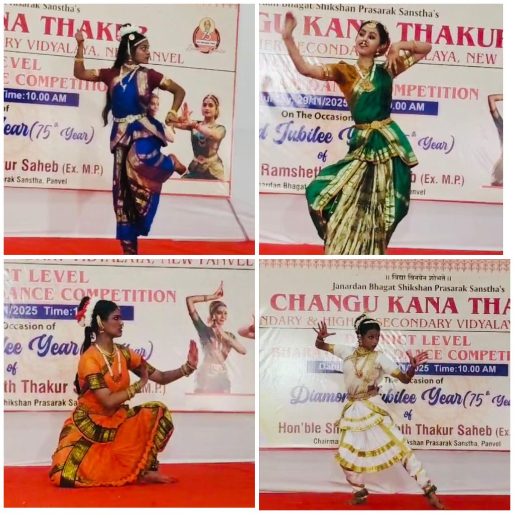 On 29th November 2025, Janardhan Bhagat Shikshan Prasarak Sanstha’s Changu Kana Thakur Higher Secondary Vidyalaya, New Panvel, organized a **District Level Bharatnatyam Dance Competition **on the auspicious occasion of the 75th Birthday Celebration of Honorable Chairman