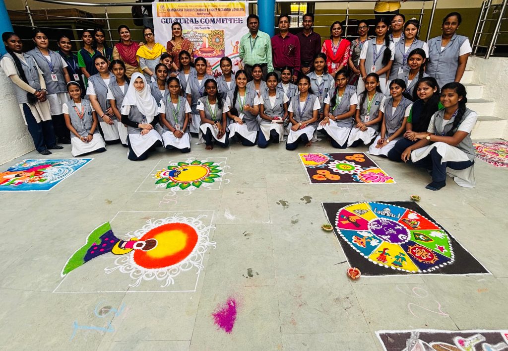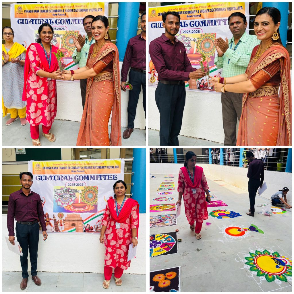 On 16th October 2025, Janardhan Bhagat Shikshan Prasarak Sanstha’s Changu Kana Thakur Secondary and Higher Secondary Vidyalaya, New Panvel, organized a Rangoli Making Competition on the auspicious occasion of Diwali. The event was held under the valuable guidance of Principal Mr. Prashant More Sir, Supervisor Mr. Ajit Sonawane Sir (Arts and Commerce) and Supervisor Mrs. Swati Patil Madam (Science).